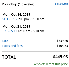 San Francisco (SFO) to Hong Kong (HKG) for $445 round-trip on United/Cathay Dragon/Asiana: