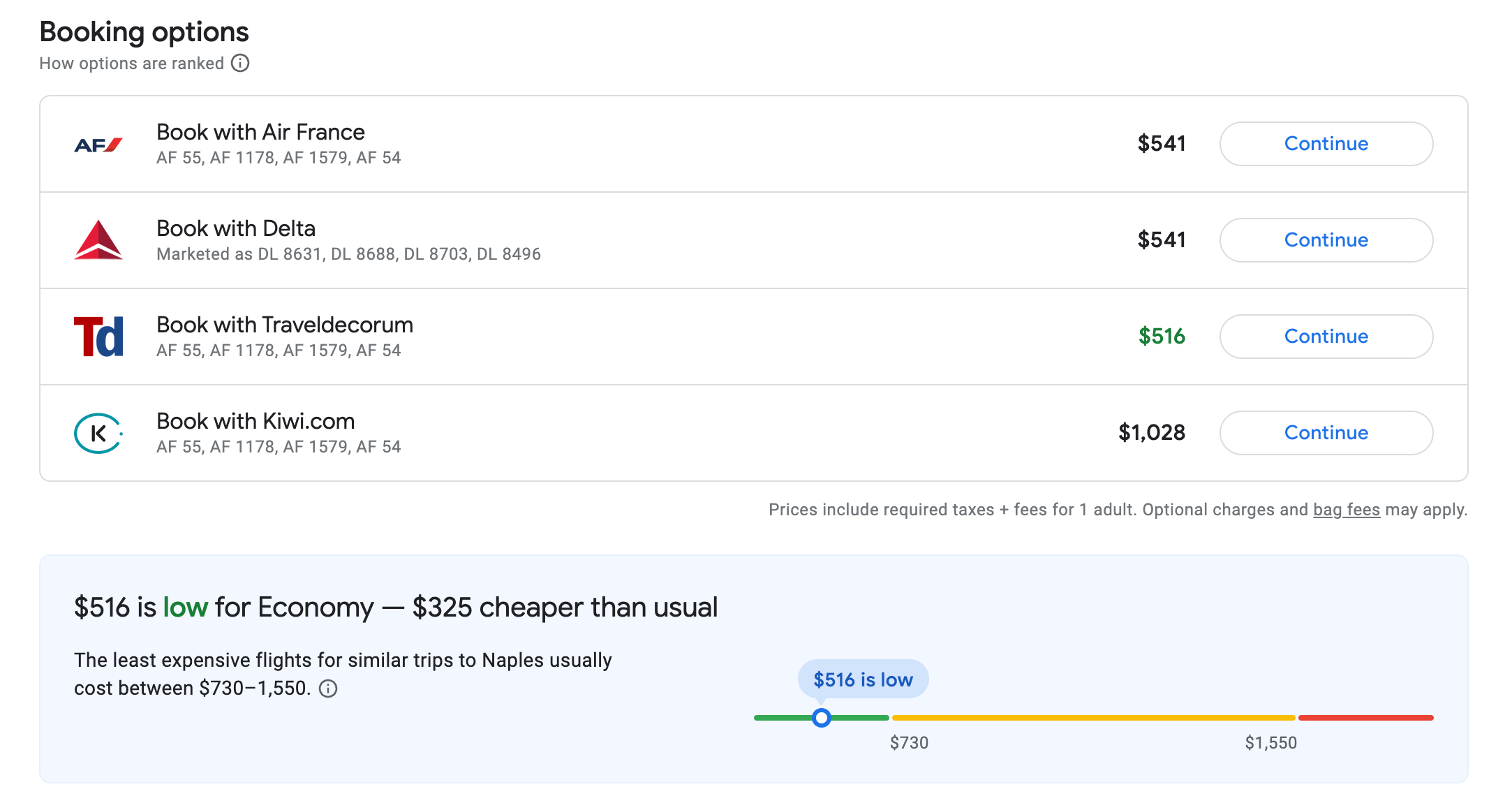 The $516 price above reflects an offer from a third-party website. However, TPG highly recommends booking directly through the airline in case your plans change.