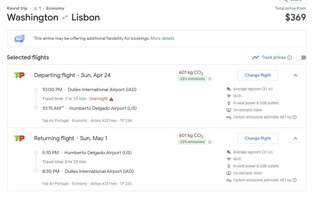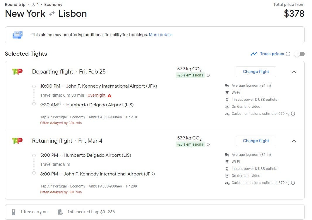 The deals below are basic economy tickets on TAP Air Portugal, which include a standard seat, meal and carry-on. A checked bag, seat selection and changes will cost additional fees.