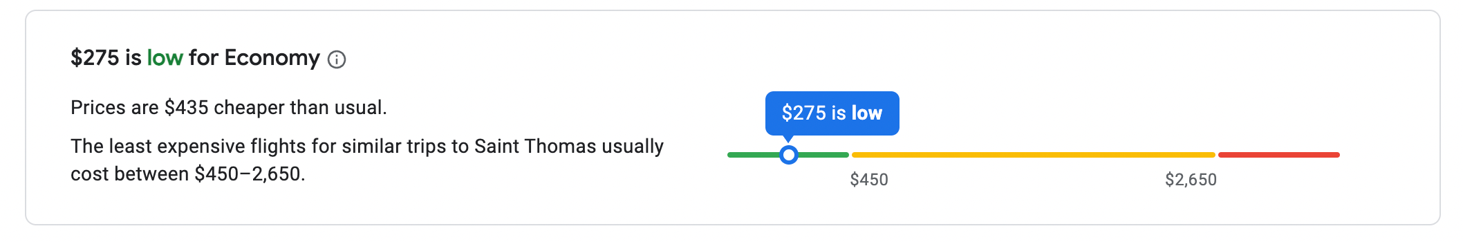 Despite the lengthy layover, the $275 price tag is a hefty discount. The cheapest tickets to St. Thomas range from $450 to $2,650, according to Google Flights.