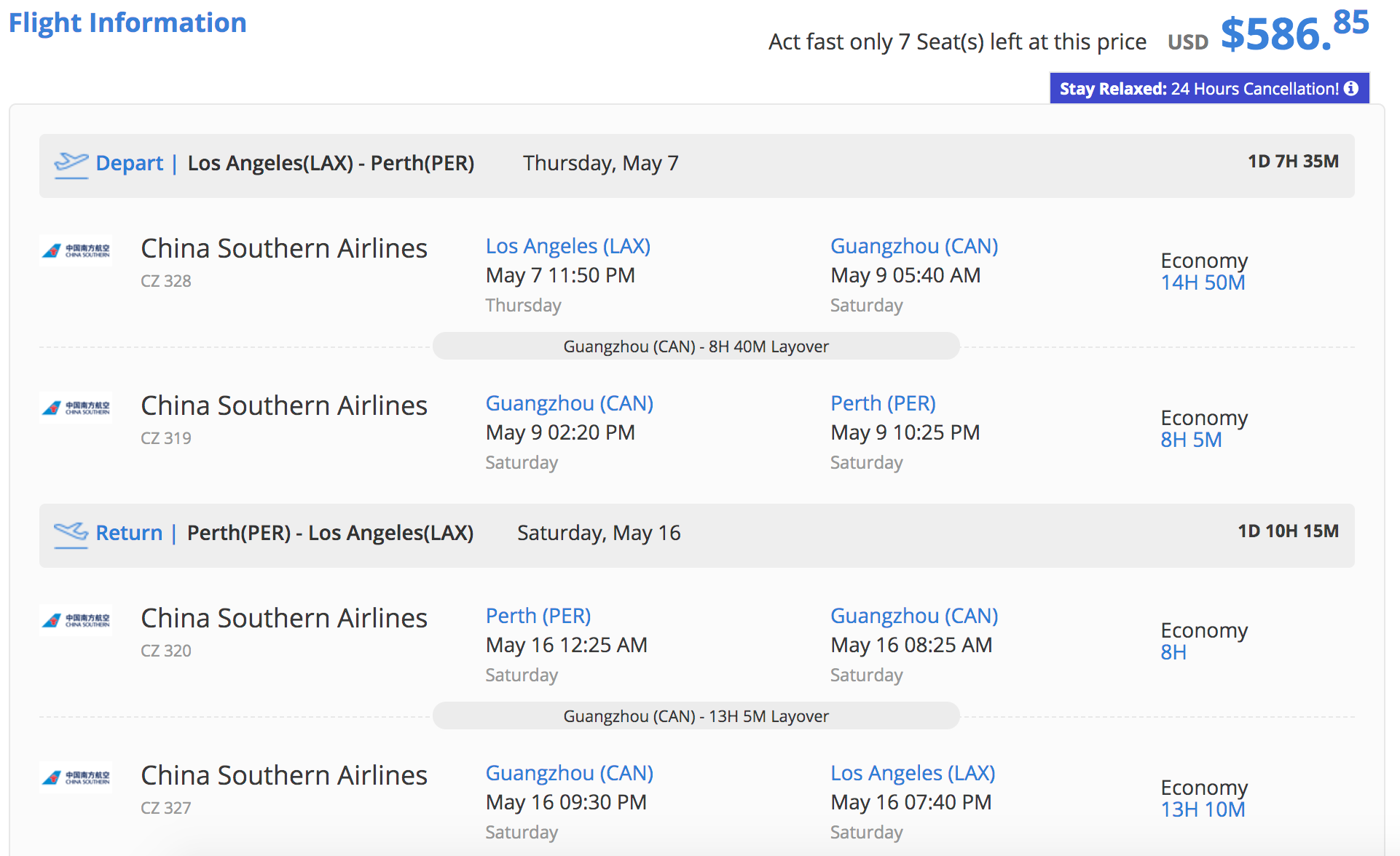 If you've been plotting a Down Under vacation but have been holding out for the right price, I have some great deals for you. We're seeing cheap deals from Los Angeles (LAX) to Sydney (SYD), Melbourne (MEL), Perth (PER) and Auckland (AKL) starting at just $564 round-trip. All deals are on China Southern, which offers a solid economy-class experience, as we've written about in the past.