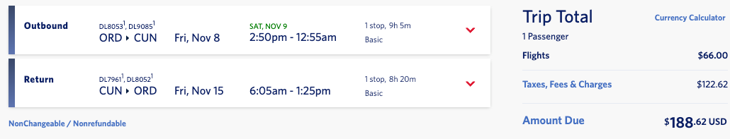 Chicago (ORD) to Cancun (CUN) for $189 round-trip on Aeromexico: