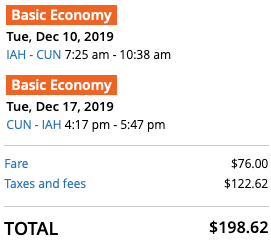 Houston (IAH) to Cancun (CUN) for $199 round-trip on United: