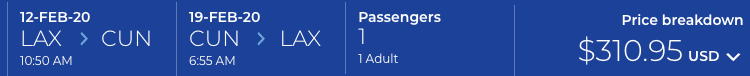 Los Angeles (LAX) to Cancun (CUN) for $311 round-trip on InterJet: