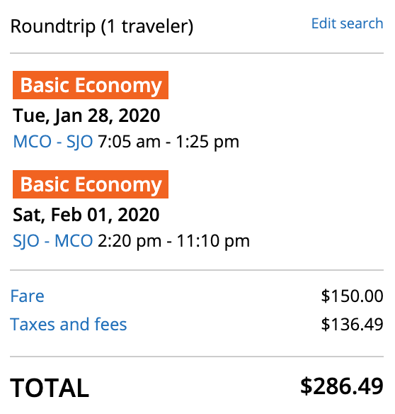 Orlando (MCO) to San Jose (SJO) for $286 round-trip on United:
