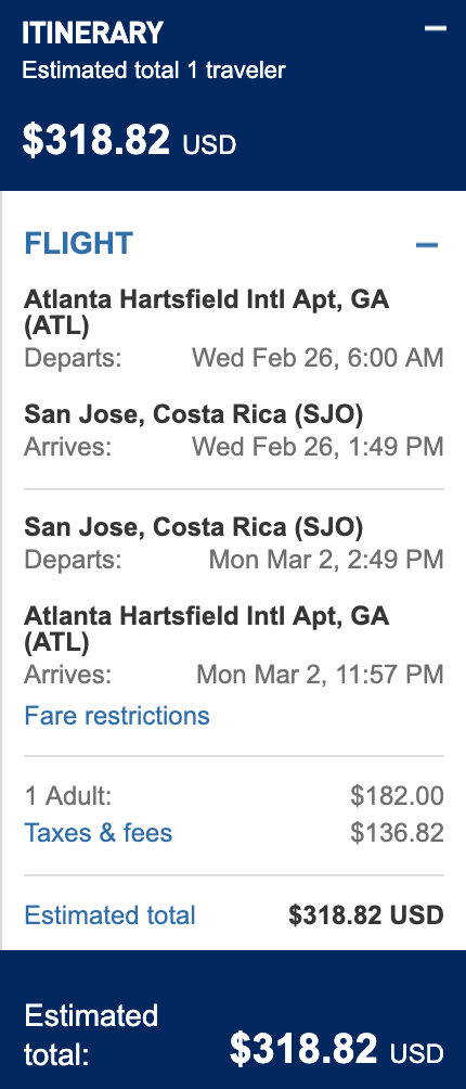Atlanta (ATL) to San Jose (SJO) for $319 round-trip on JetBlue:
