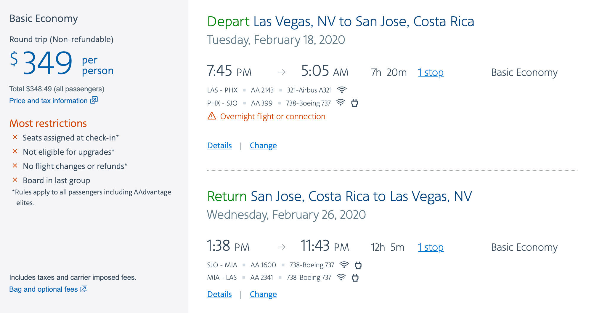 Las Vegas (LAS) to San Jose (SJO) for $349 round-trip on American: