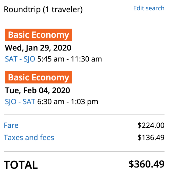 San Antonio (SAT) to San Jose (SJO) for $360 round-trip on United:
