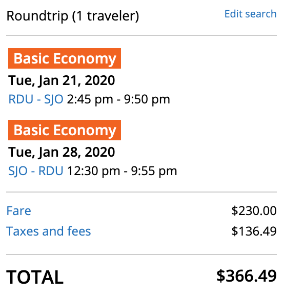 Raleigh-Durham (RDU) to San Jose (SJO) for $366 round-trip on United: