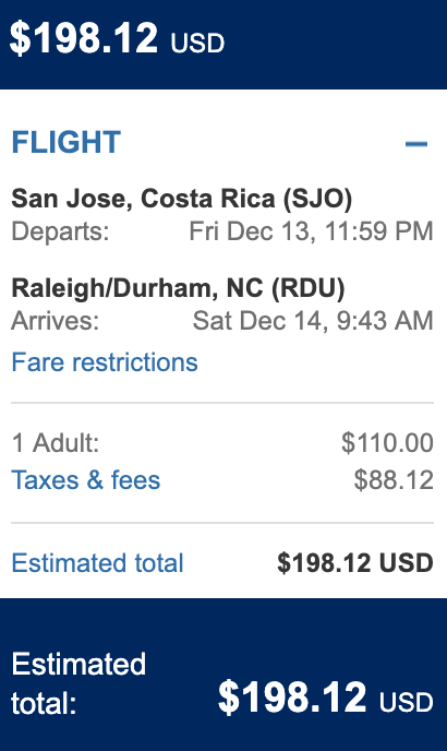 Raleigh (RDU) to San Jose (SJO) for $363 round-trip when booked separately on Delta and JetBlue: