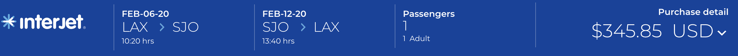Los Angeles (LAX) to San Jose (SJO) for $346 round-trip on Interjet: