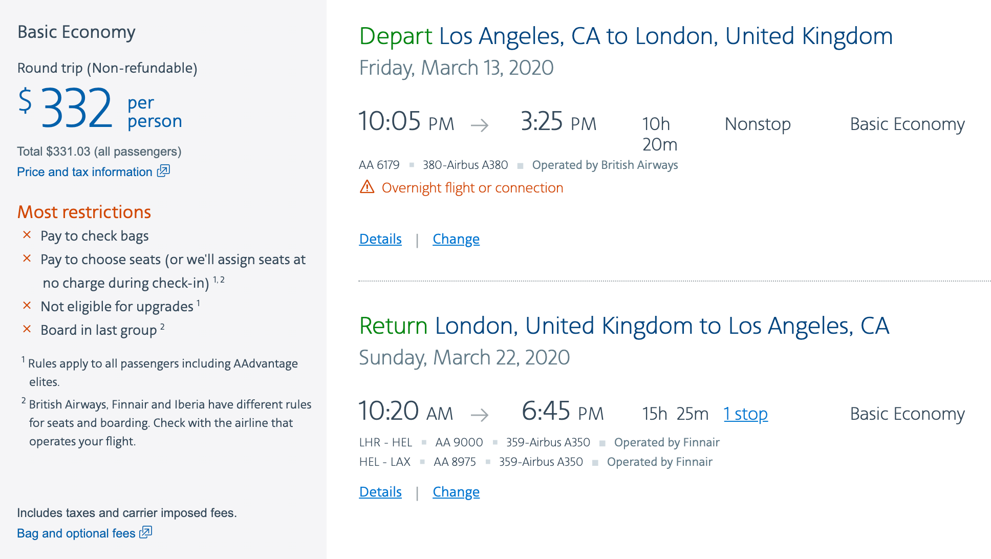 Los Angeles (LAX) to London (LHR) for $331 round-trip on American: