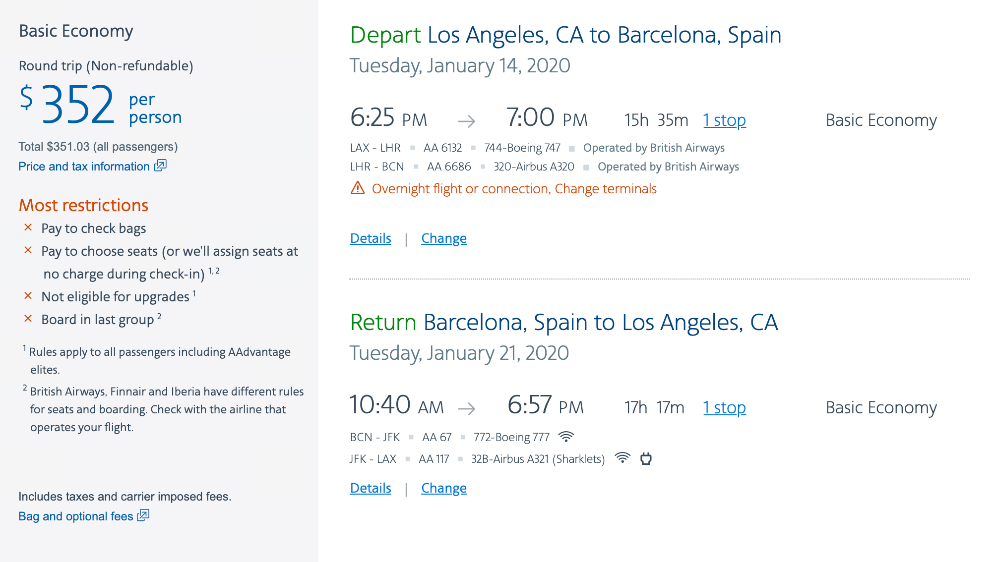Los Angeles (LAX) to Barcelona (BCN) for $351 round-trip on American: