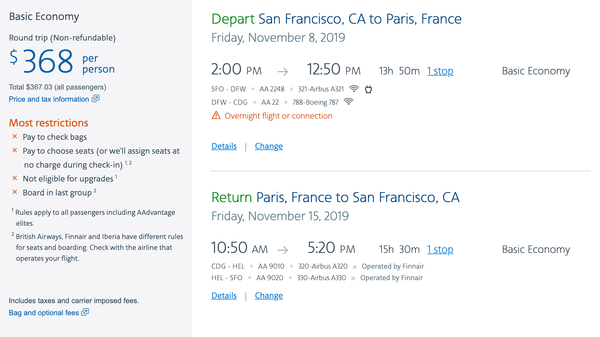 San Francisco (SFO) to Paris (CDG) for $367 round-trip on American: