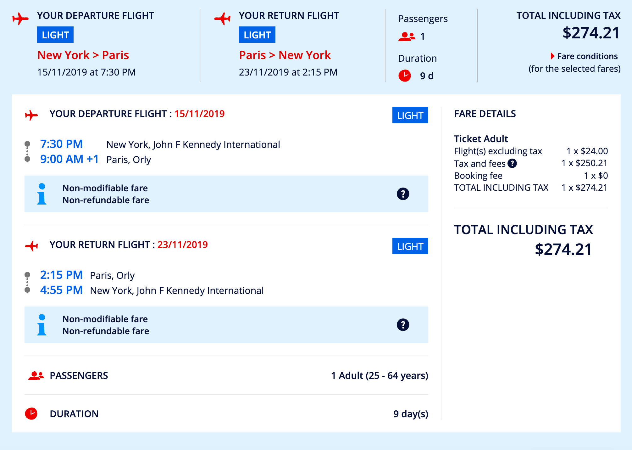 New York (JFK) to Paris (ORY) for $274 round-trip on Air France: