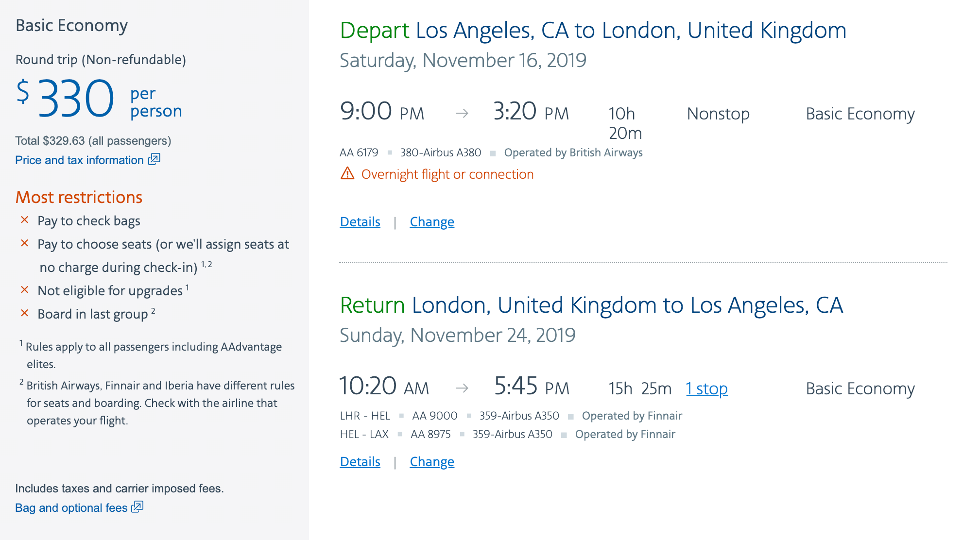 Los Angeles (LAX) to London (LHR) for $330 round-trip on American: