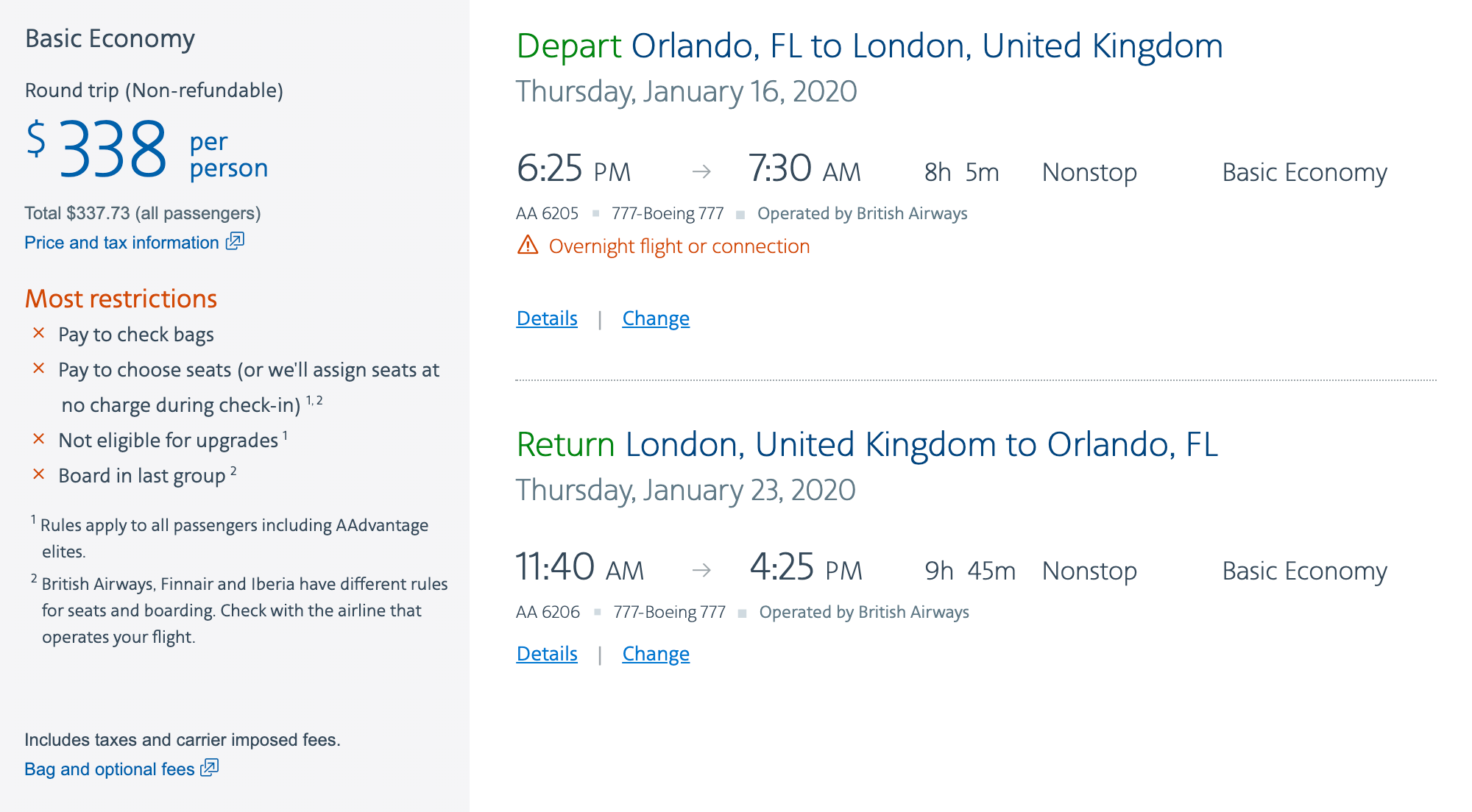 Orlando (MCO) to London (LHR) for $338 round-trip nonstop on American: