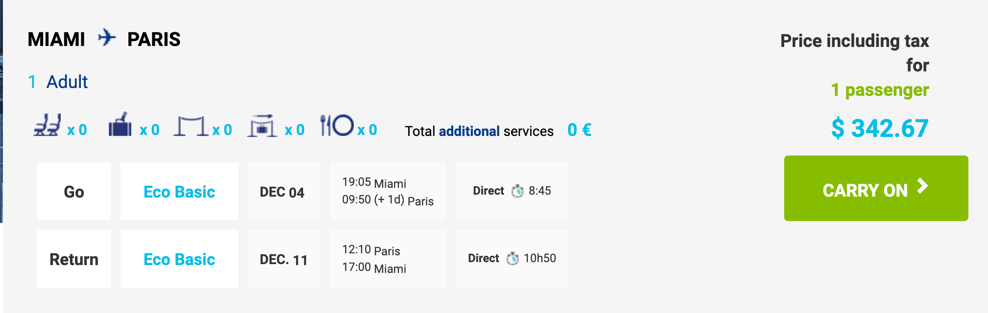 Miami (MIA) to Paris (CDG) for $343 round-trip on Corsair: