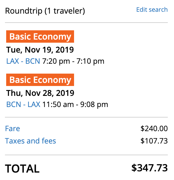 Los Angeles (LAX) to Barcelona (BCN) for $348 round-trip on United: