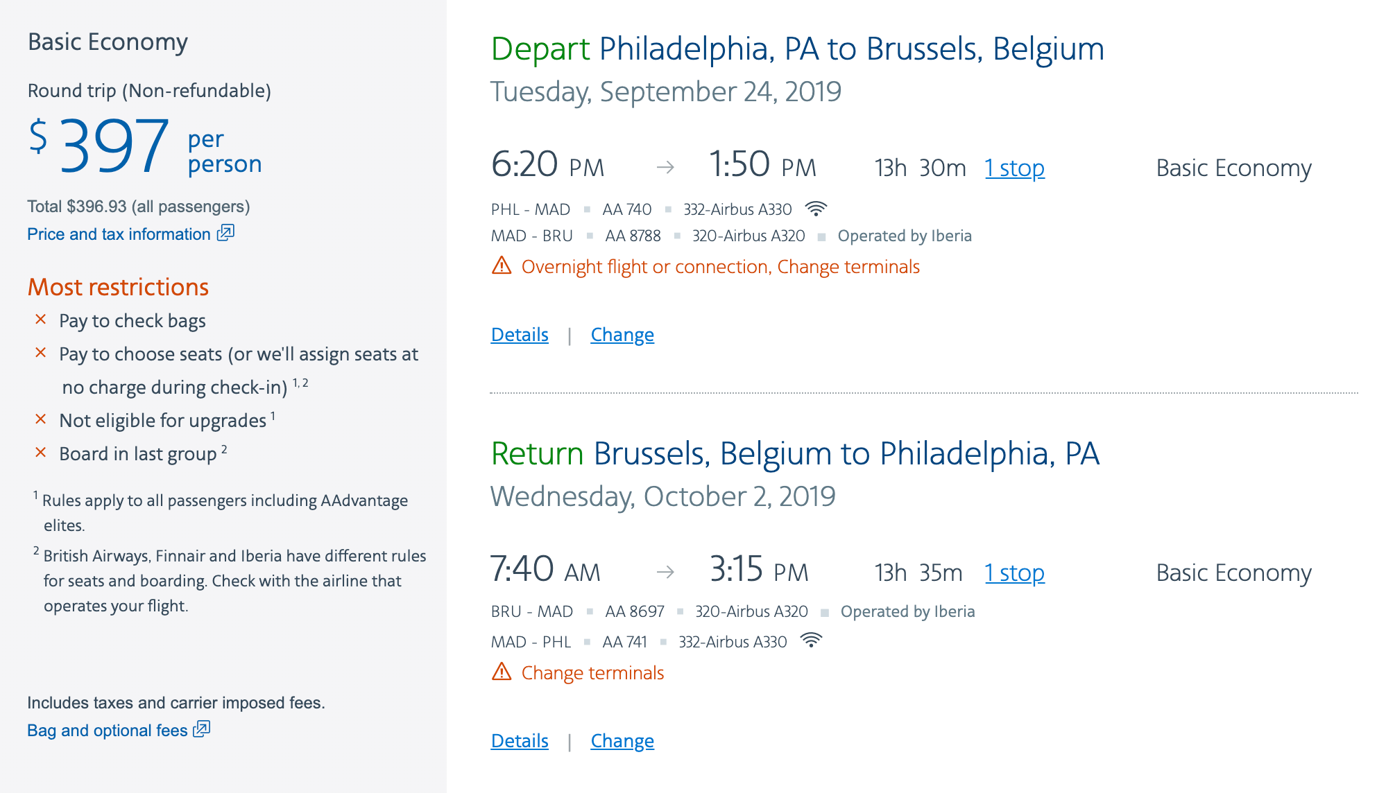 Philadelphia (PHL) to Brussels (BRU) for $397 round-trip on American: