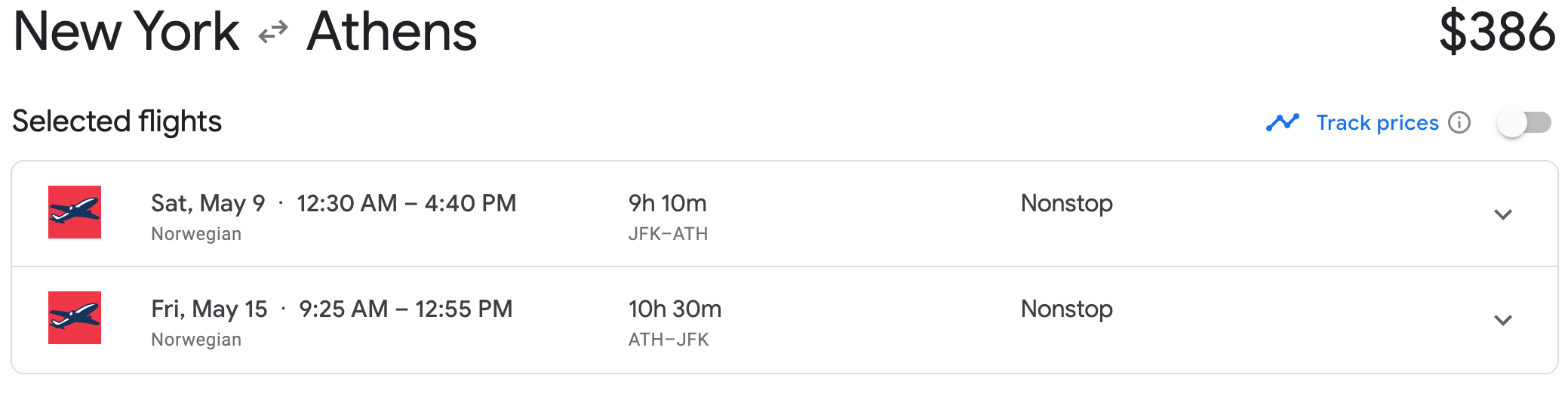 New York (JFK) to Athens (ATH) on American/Iberia for $386 round-trip nonstop: