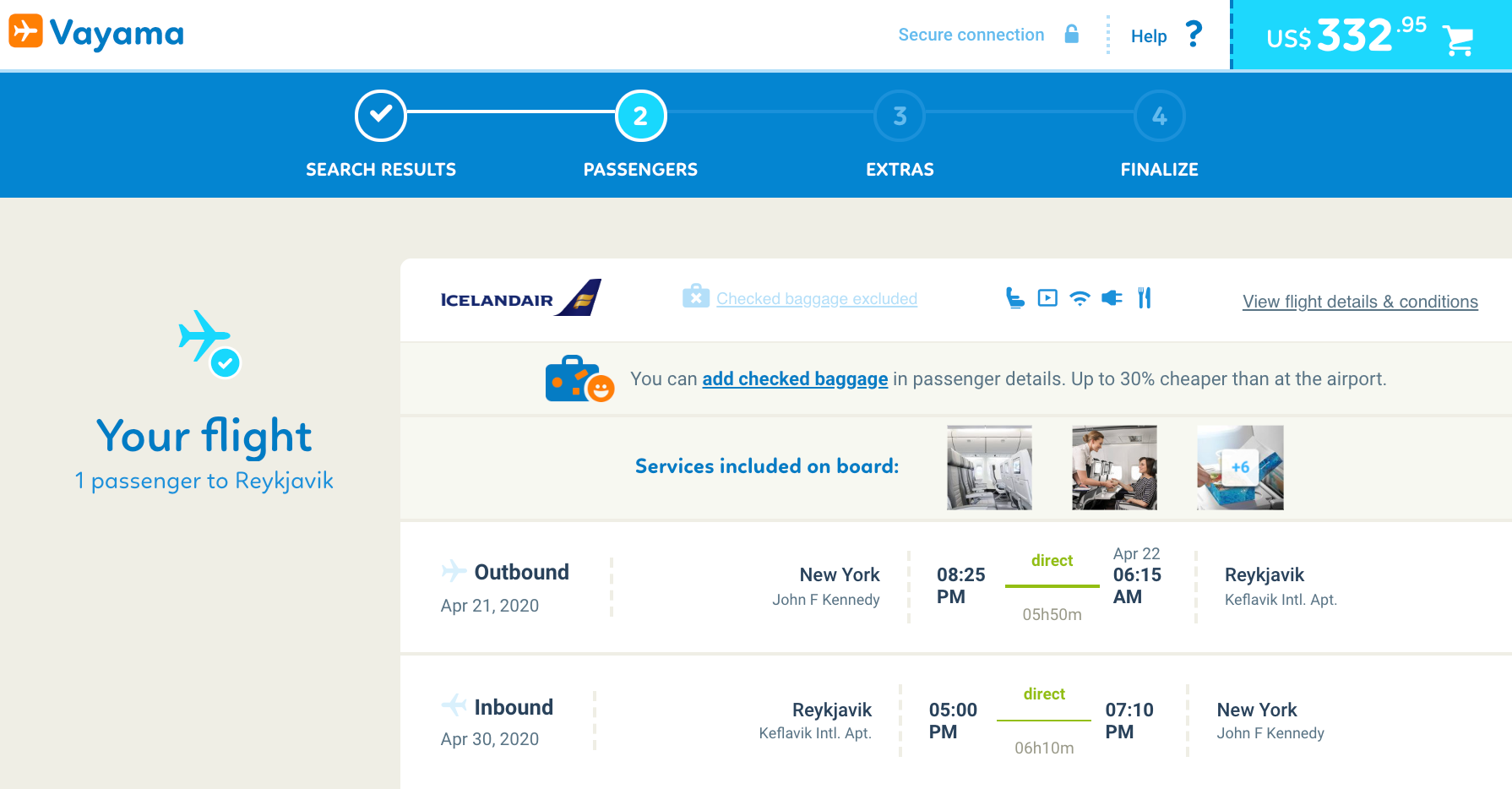 New York (JFK) to Reykjavik (KEF) for $333 round-trip on Icelandair via Vayama: