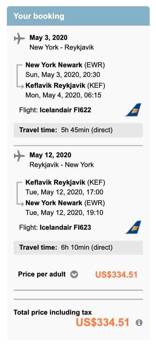 New York/Newark (EWR) to Reykjavik (KEF) for $335 round-trip on Icelandair via Gotogate: