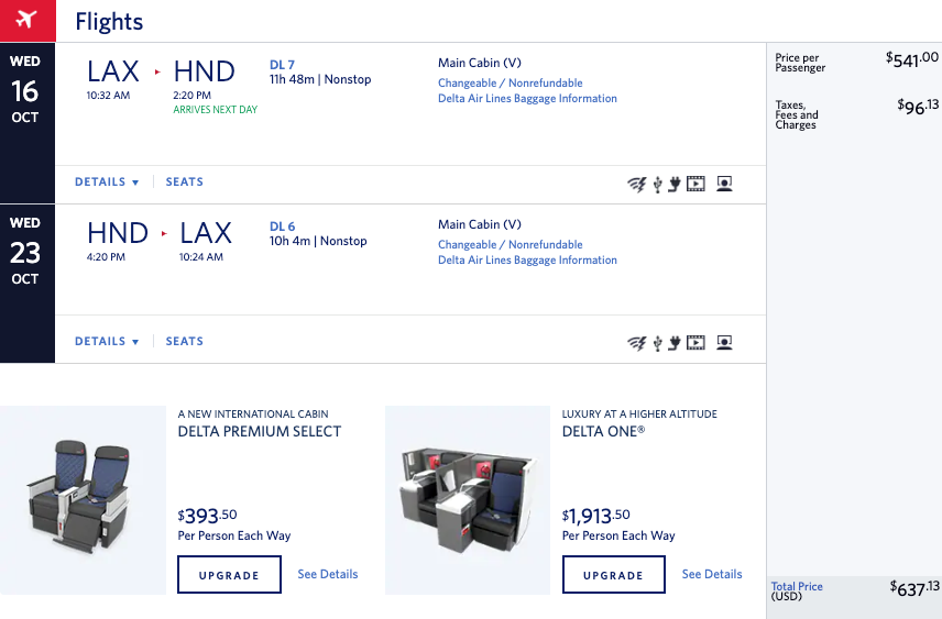 Los Angeles (LAX) to Tokyo (HND) for $637 round-trip on Delta:
