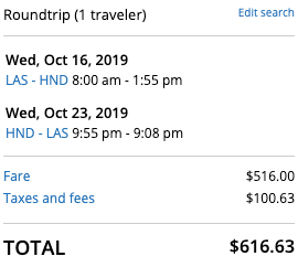Las Vegas (LAS) to Tokyo (HND) for $617 round-trip on United: