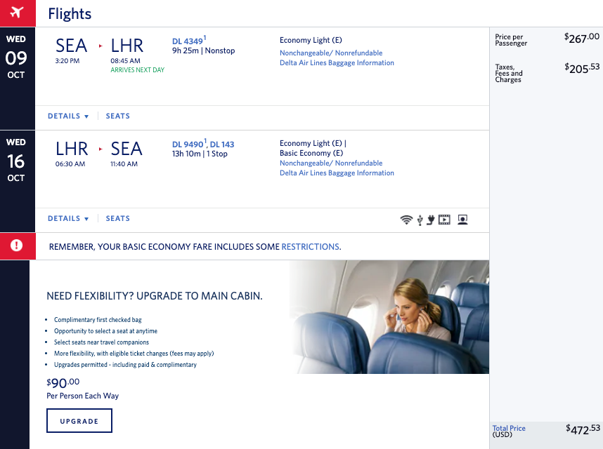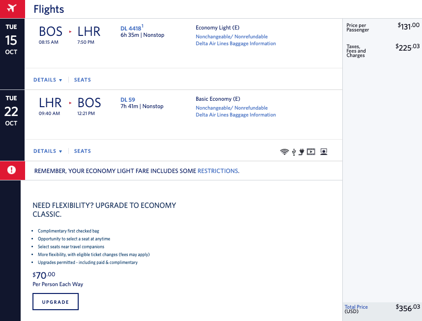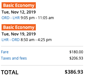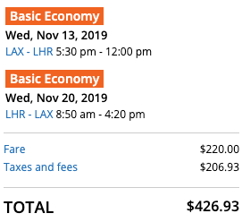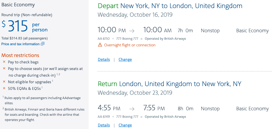 Cost: $315+ round-trip in basic economy