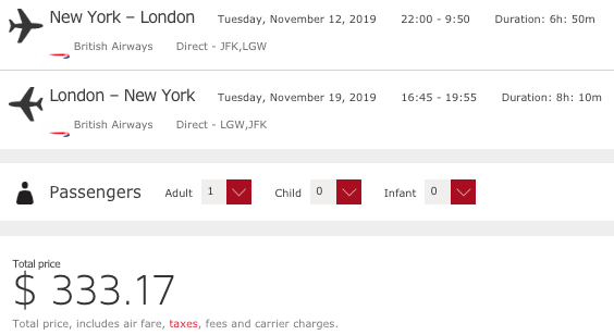 New York (JFK) to London (LGW) for $333 round-trip nonstop on British Airways via Iberia.com: