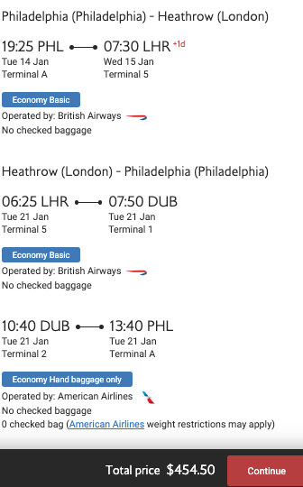 Philadelphia (PHL) to London (LHR) for $455 round-trip on American/British Airways: