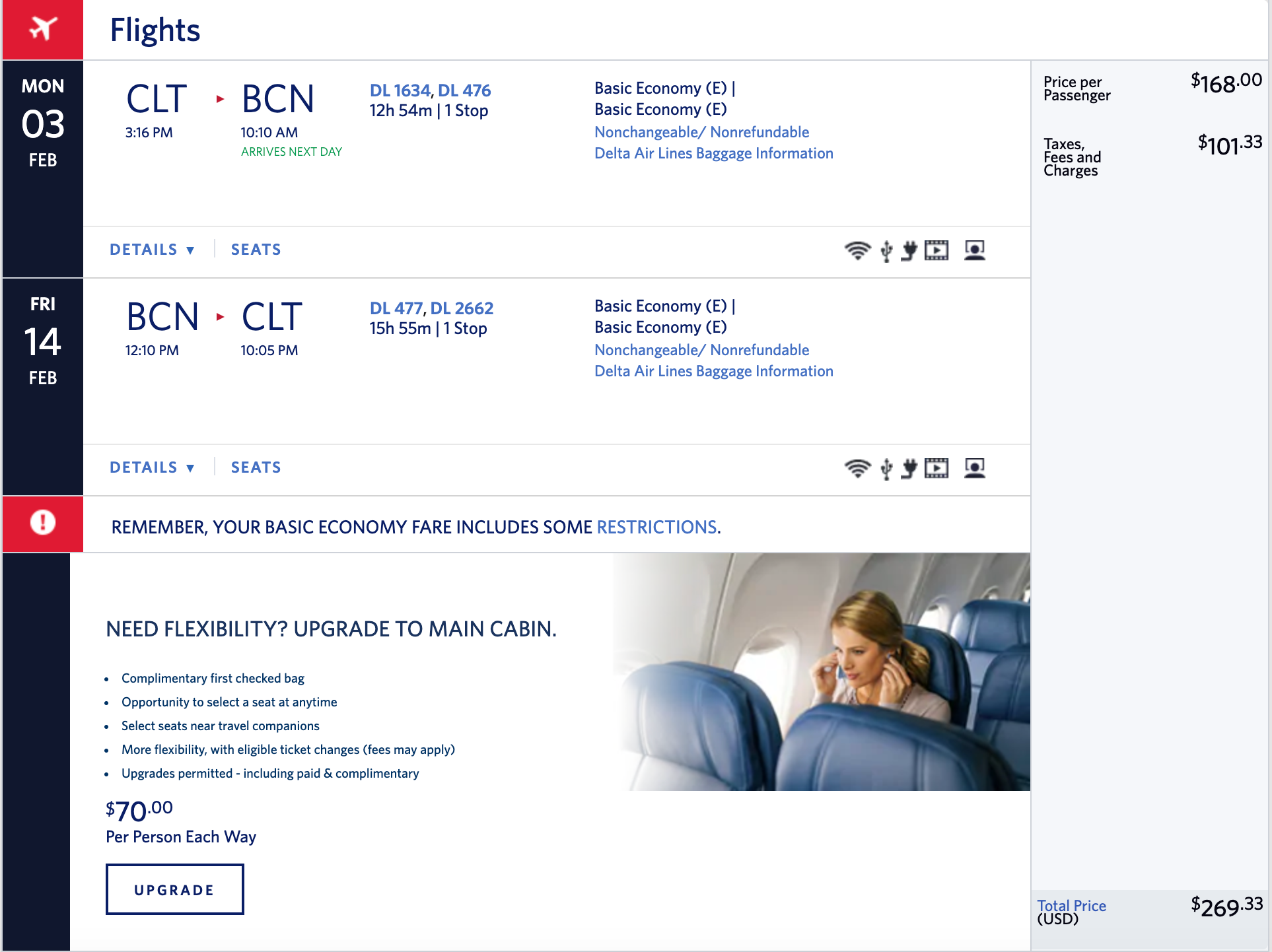 These fares are in basic economy so you'll have to pay extra for a checked bag or to select your seat.