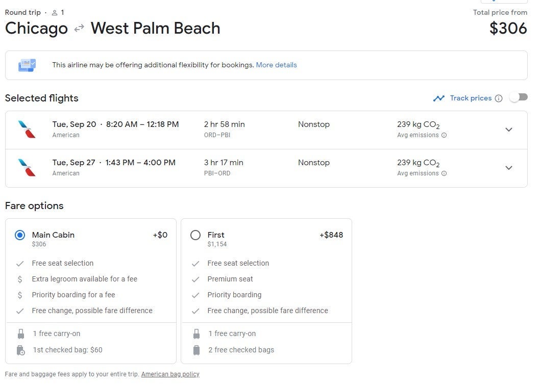 The following deals are for main cabin seats on American, which includes seat selection and a carry-on. A checked bag will cost $60.