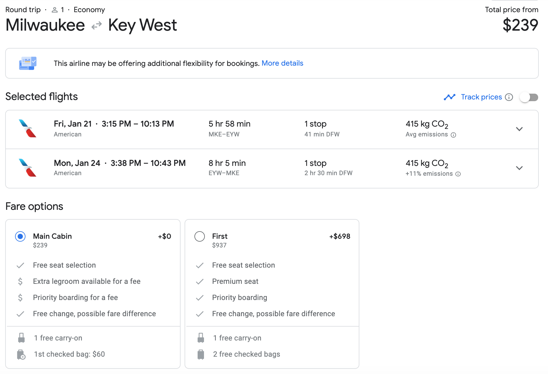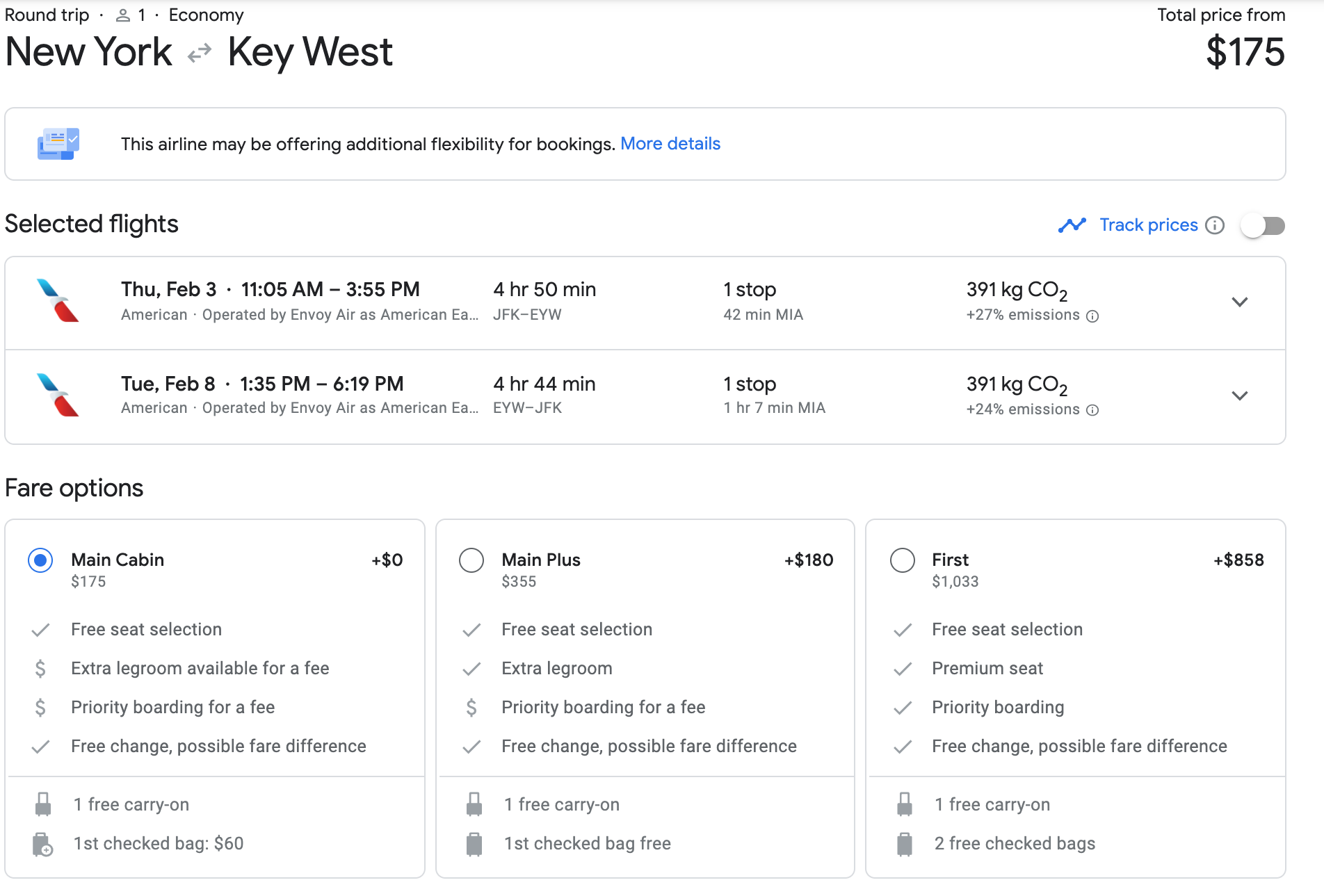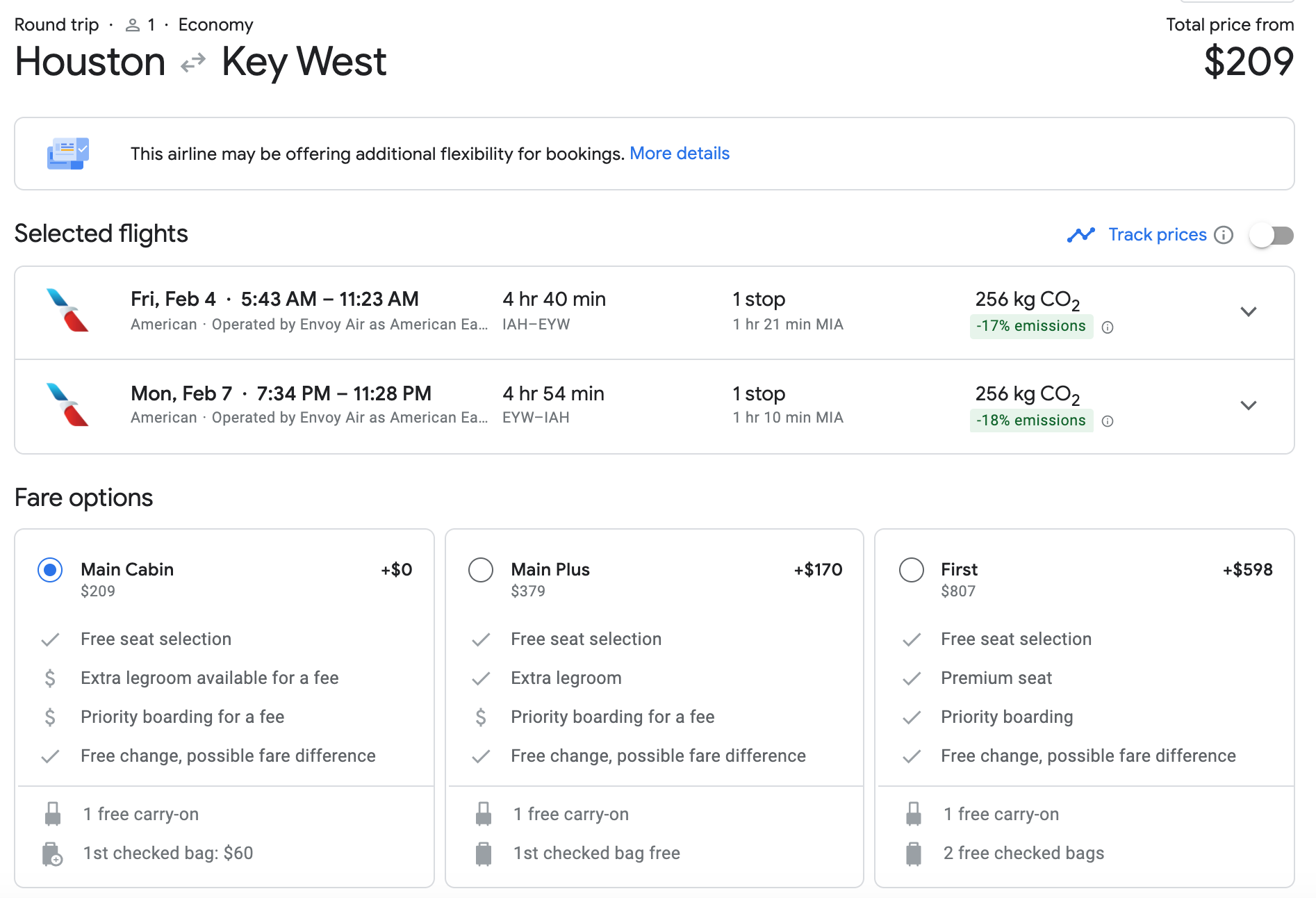 Houston to the Keys is just $209 right now via American. We found the best availability for a long weekend in December and January.