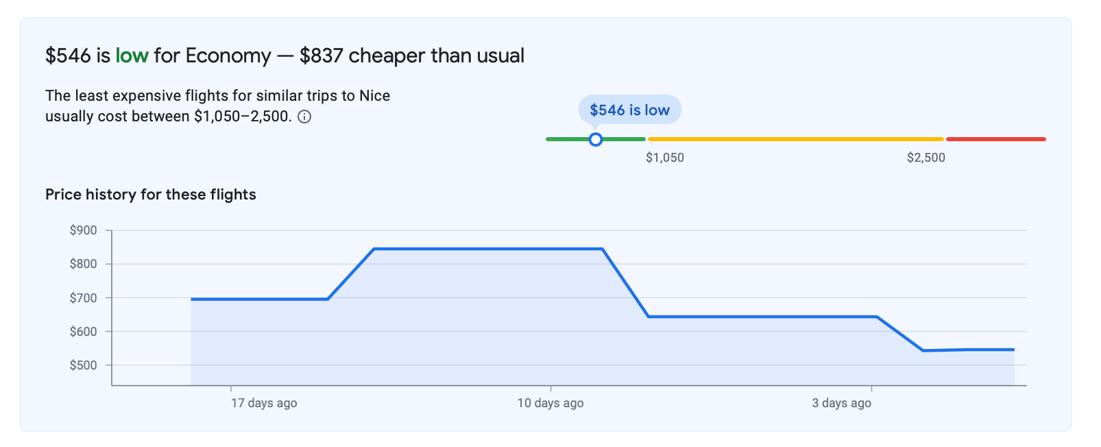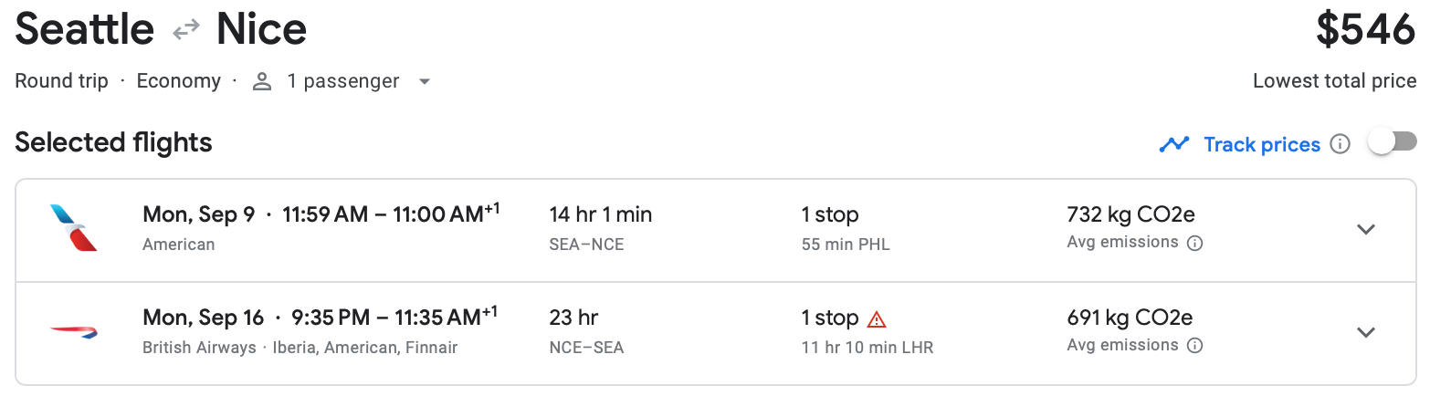 Check out this incredible fare from Seattle to Nice. You can book a seat on American for only $546 round-trip.
