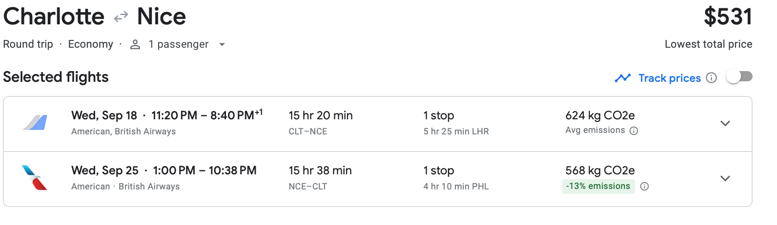 You can fly from Charlotte to Nice in mid-September for just $531 round-trip.