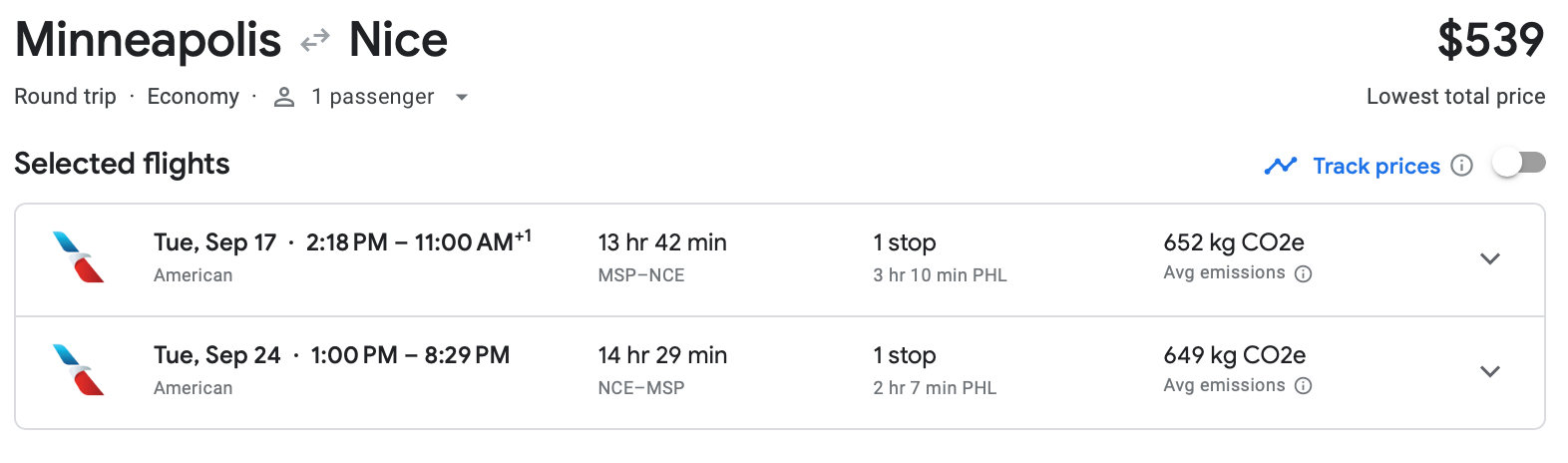 You can fly from Minneapolis to Nice in mid-September for $539 — about half what this fare typically goes for.