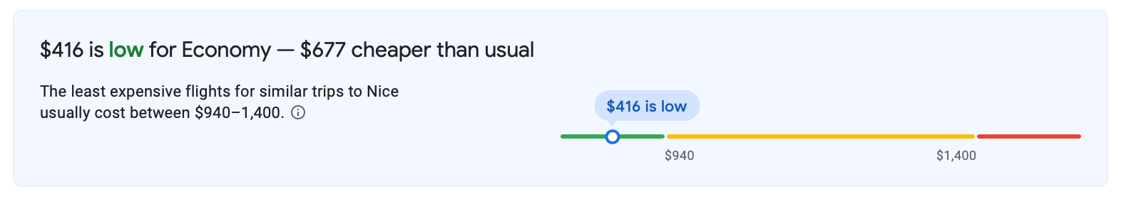 The best prices are available between November and March 2025. Departure cities include Boston, Los Angeles and New York City. This sale involves flights to Nice Cote d'Azur Airport (NCE), the main aviation hub for travel to and from the French Riviera.