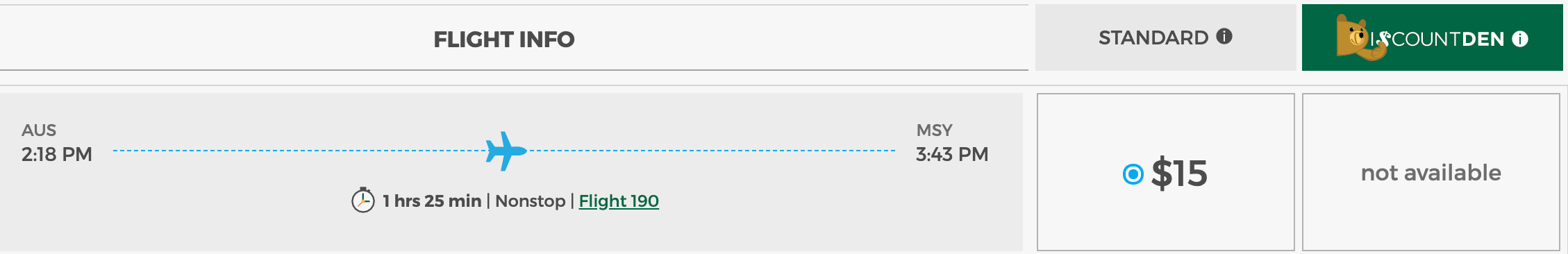 Austin (AUS) to New Orleans (MSY) for $15 one-way: