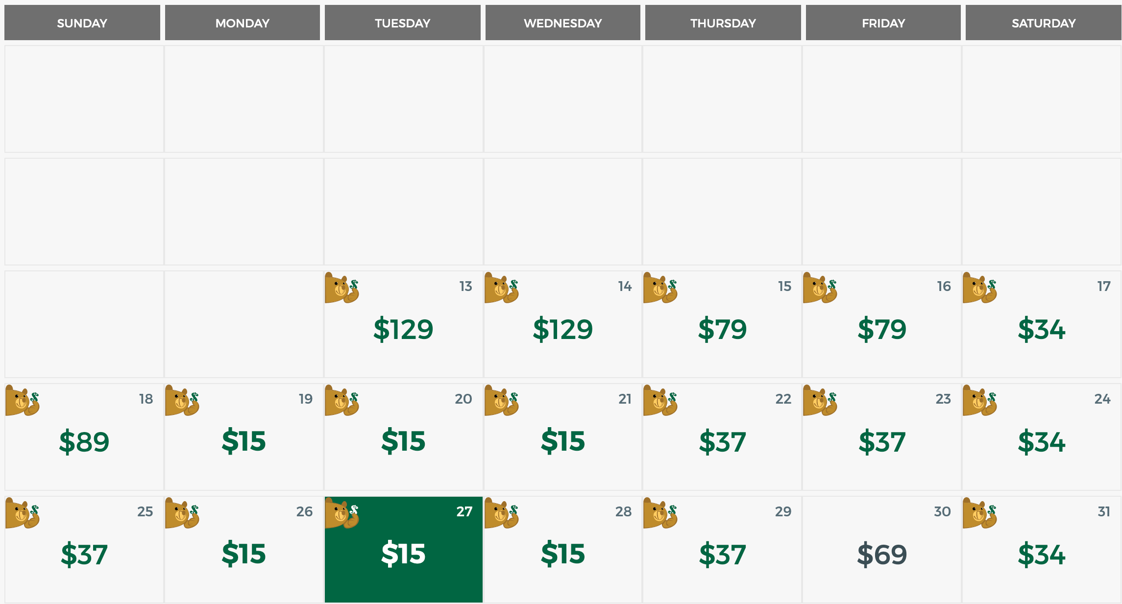This sale ends tomorrow, so you'll need to act fast. As is the case with any Frontier flash sale, there are blackout dates. To take advantage of these cheap fares, flights must depart between Aug. 16 and October 10, 2019 on select dates (so use the Frontier calendar search view).