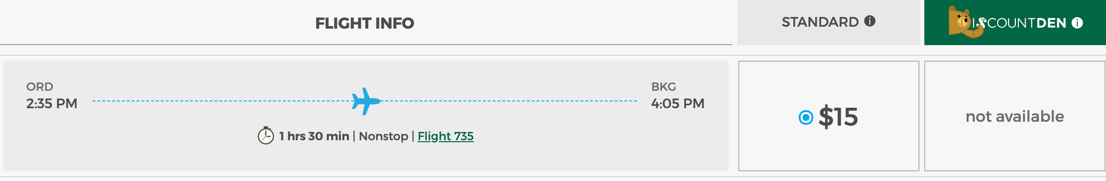 Chicago (ORD) to Branson (BKG) for $15 one-way: