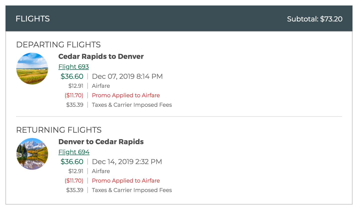 Cedar Rapids (CID) to Denver (DEN) for $37 one-way or $73 round-trip nonstop: