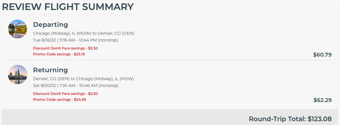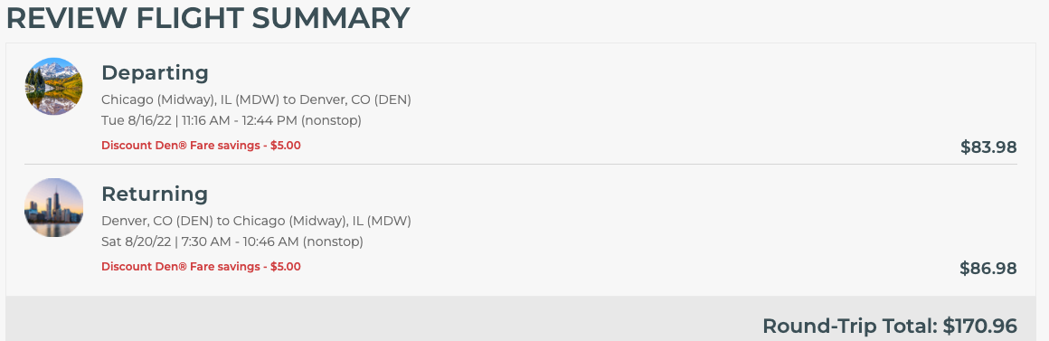 For example, you can book this nonstop flight from Chicago to Denver in mid-August for just less than $124 round trip.