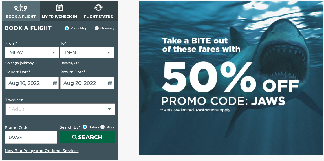 Travelers can book this deal directly online through Frontier by using the promo code JAWS, as shown below.