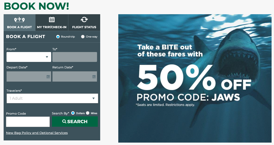This is a timely sale ending tonight, so be sure to book ASAP to save even more money on already low-priced Frontier routes. Be sure to use promo code JAWS to take advantage of this deal.