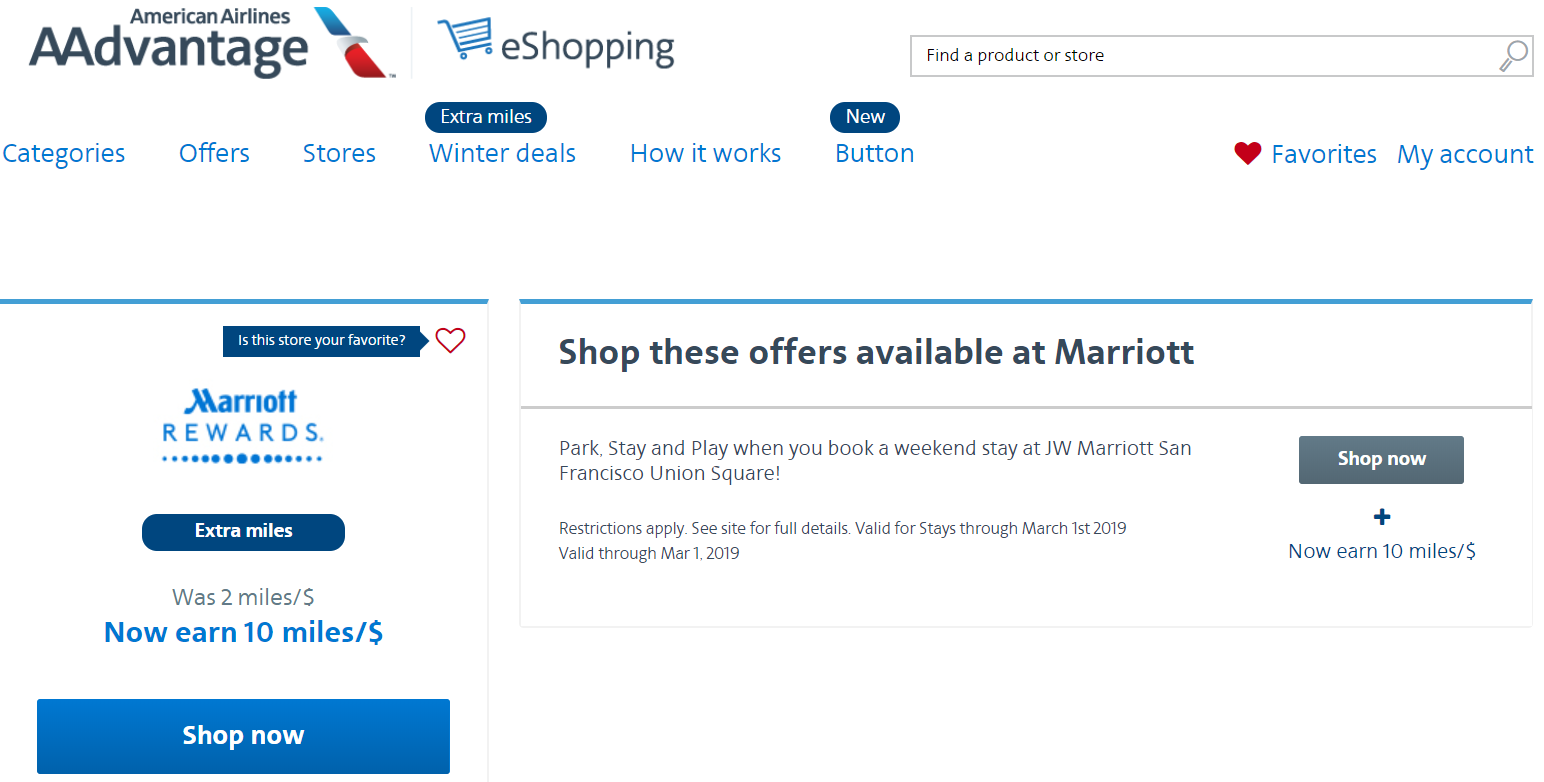 While AAdvantage is certainly the most valuable option, there's other elevated shopping portal bonus payouts for Marriott purchases: