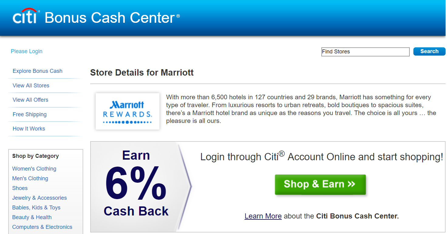 Or, if you're just looking to maximize your cashback, you can get 6% cashback through the Citi Bonus Cash Center:
