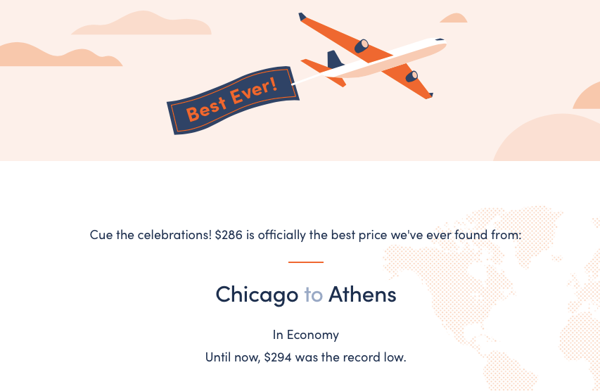 Today's deal marks the best price on record for the included routes. Previously, the lowest price for ORD-ATH was $294 round-trip, and it normally costs $850.