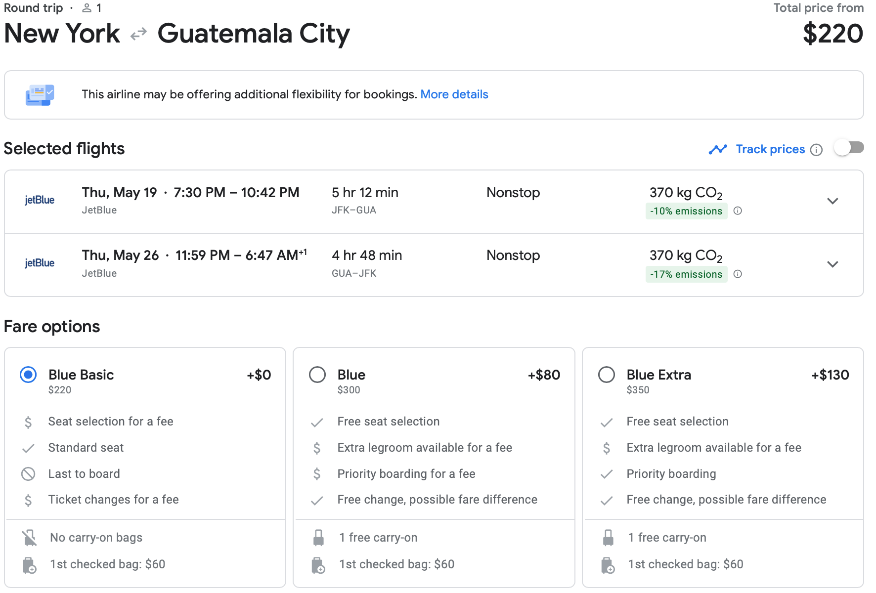 JetBlue has nonstop flights out of New York's John F. Kennedy International Airport (JFK) to Guatemala in May for $220.
